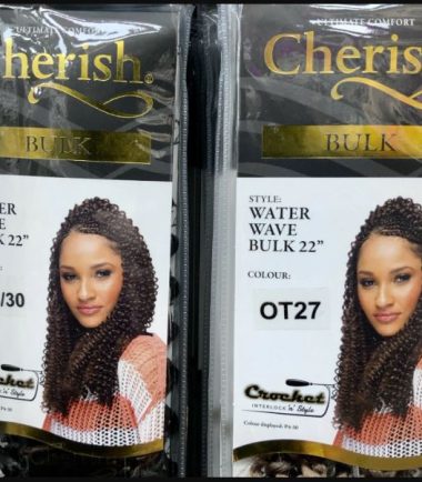 Cherish Water Wave Bulk 22” Crochet Hair Braids in all colours! Made from high-quality Cherish Hair, these Crochet Hair Braids are designed to be easy to knit and shine like human hair.The Cherish Water Wave fiber used in these braids is the most delicate and unique, providing a truly natural