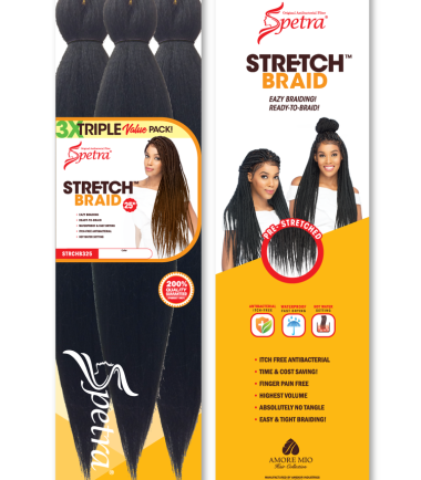 We have spectra Pre Stretched Braiding Hair of miracle fiber whether smart stretched braid. A triple value pack of Amore Mio hair collection i.e # 1 choice by professionals, 25″ size and 16″, that has following properties easy braiding, ready-to-braid, waterproof and fast drying, itch-free antibacterial and hot water setting